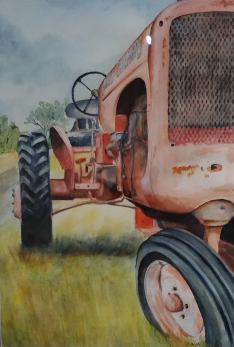 Al Morris, Allis (watercolor) and The Harvester (watercolor): "Allis is an old tractor that is parked behind Lebanon Baptist church, slowly rusting away. The Harvester is an International Harvester pickup that is still being used as a farm truck by the Thornton Valley Orchards in Thornton Valley, Virginia. I like rusty old trucks and tractors. They tell a story in all the dings and dents. The rust displays hard times, hard work and days long since past.”